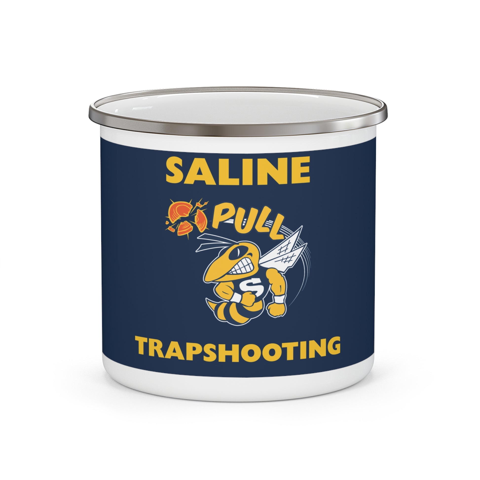 Saline Pull Trapshooting Enamel Camping Mug - Perfect for Outdoor Enthusiasts